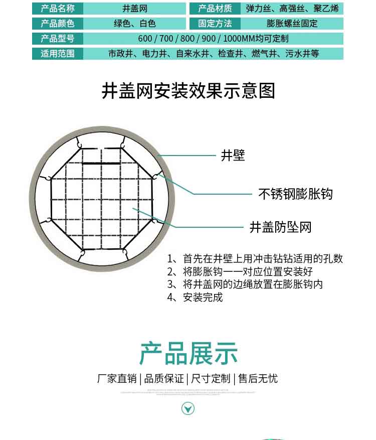 上一篇 : 窨井防護網_防墜井蓋網_水道防護防墜網