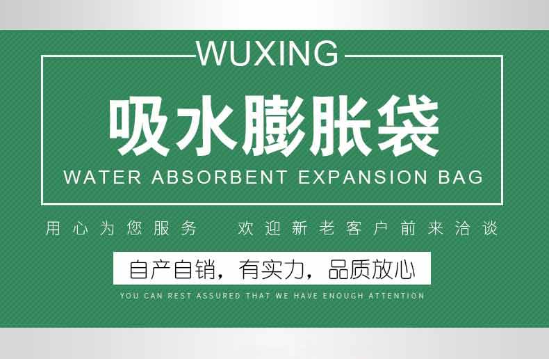 采用以水治水的新理念:在防汛搶險緊急時刻無處尋找砂石土料,可以將吸水膨脹袋放入水中,3分鐘可迅速膨脹到20-25公斤,代替人工裝沙填土的防汛沙袋時代,也可以直接將吸水膨脹袋投放到管涌口,快速封堵堤壩管涌,廣泛用于防洪搶險,堤壩管涌,河堤堵漏,堤防漏洞、漫溢搶護,防洪堤防的臨時性加高,臨時性防水圍城的構筑,水庫,江河大堤滲水滑坡,護坡防沖,工程截流,暗溝和暗洞的堵塞。用于庫房,庭院,溝塘,被淹耕地排水;用于容易淹水的工廠,隧道,地下停車場,地鐵等領域作為防落水的使用;用于市政設施、道路施工,工地橋梁建設,競賽場地等積水處吸水去水。是我國各地水利,水務,防汛辦,防汛物資儲備及市政排水,和城市易澇區必備的應急防汛儲備物資。