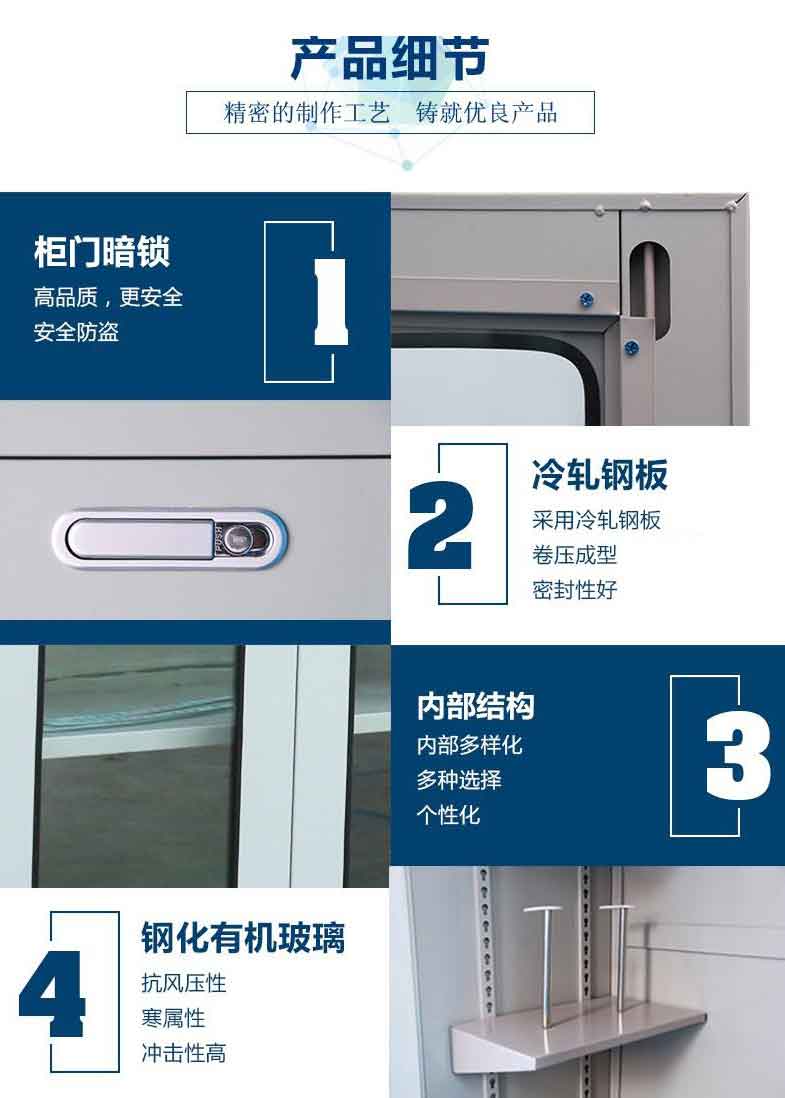 安全工具柜是集防潮、除濕、防塵、防損、整齊美觀于一體的普通智能安全工具柜系列產品。其外殼使用優質冷板,采用藝術型靜電噴涂,柜門選用高強度鋼化玻璃,外觀大方、美觀。